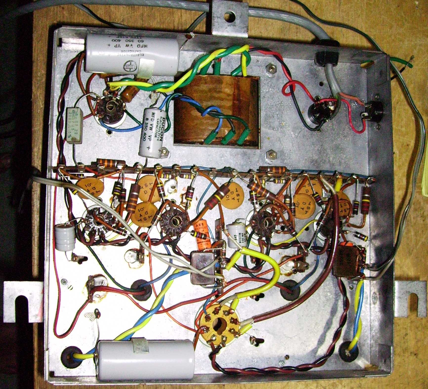The chassis is stamped 1569. The output and power transformers are marked 4156 0C8 (16K PP; 16Ω secondary) and 3261 0C8 (0-240V; 260-CT-260 ?mA, 6V3 5A), so could be custom A&R. The various identifiable part date-codes seem to indicate a circa 1969 manufacture.